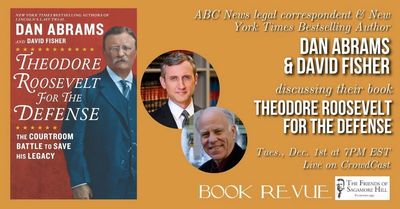 On Tuesday, December 1, 2020, at 7 PM EST, an audience of 130 attended (via Crowdcast) an informative and entertaining conversation between authors Dan Abrams and David Fisher discussing their book, Theodore Roosevelt for the Defense.